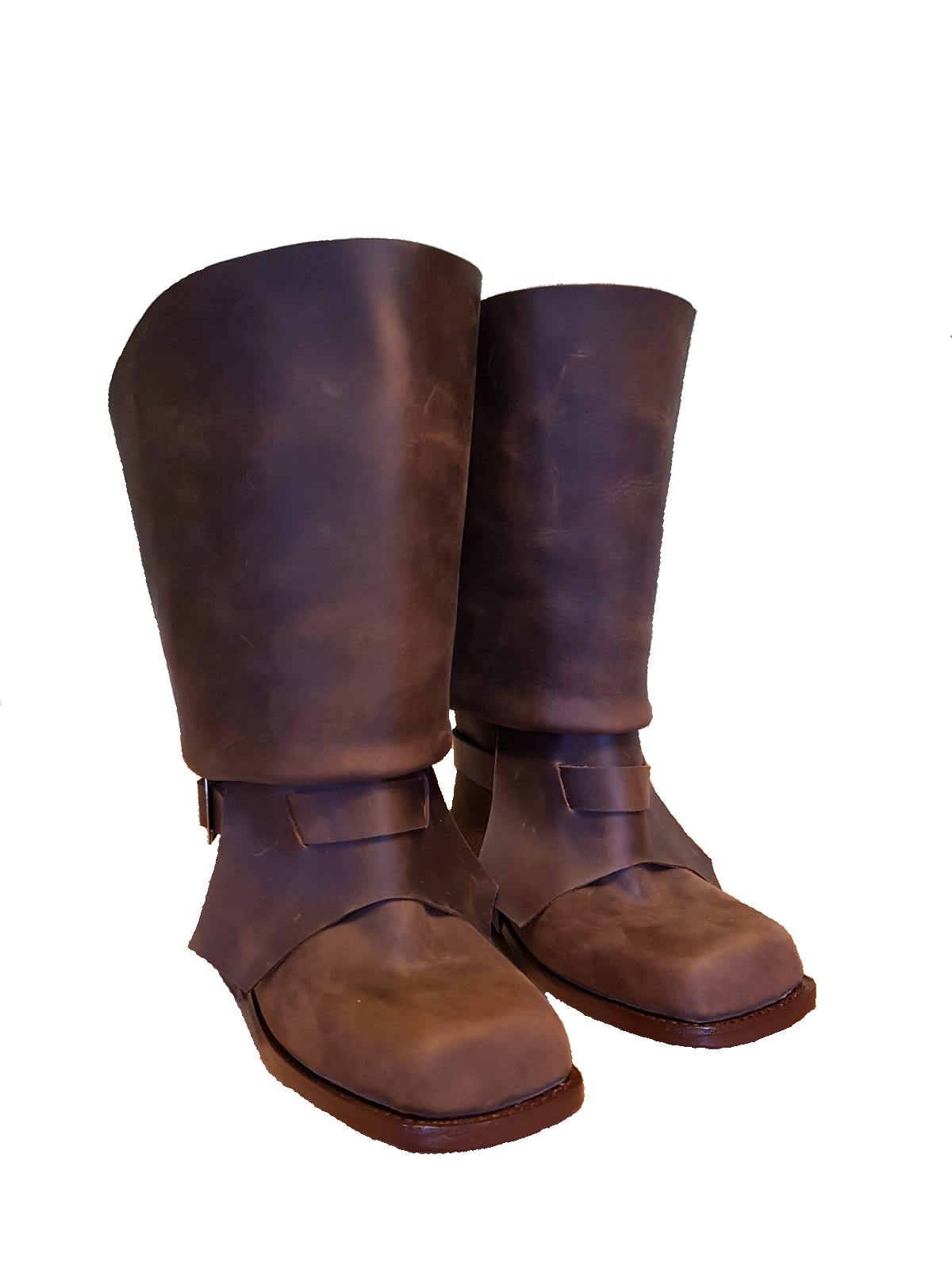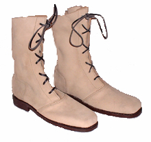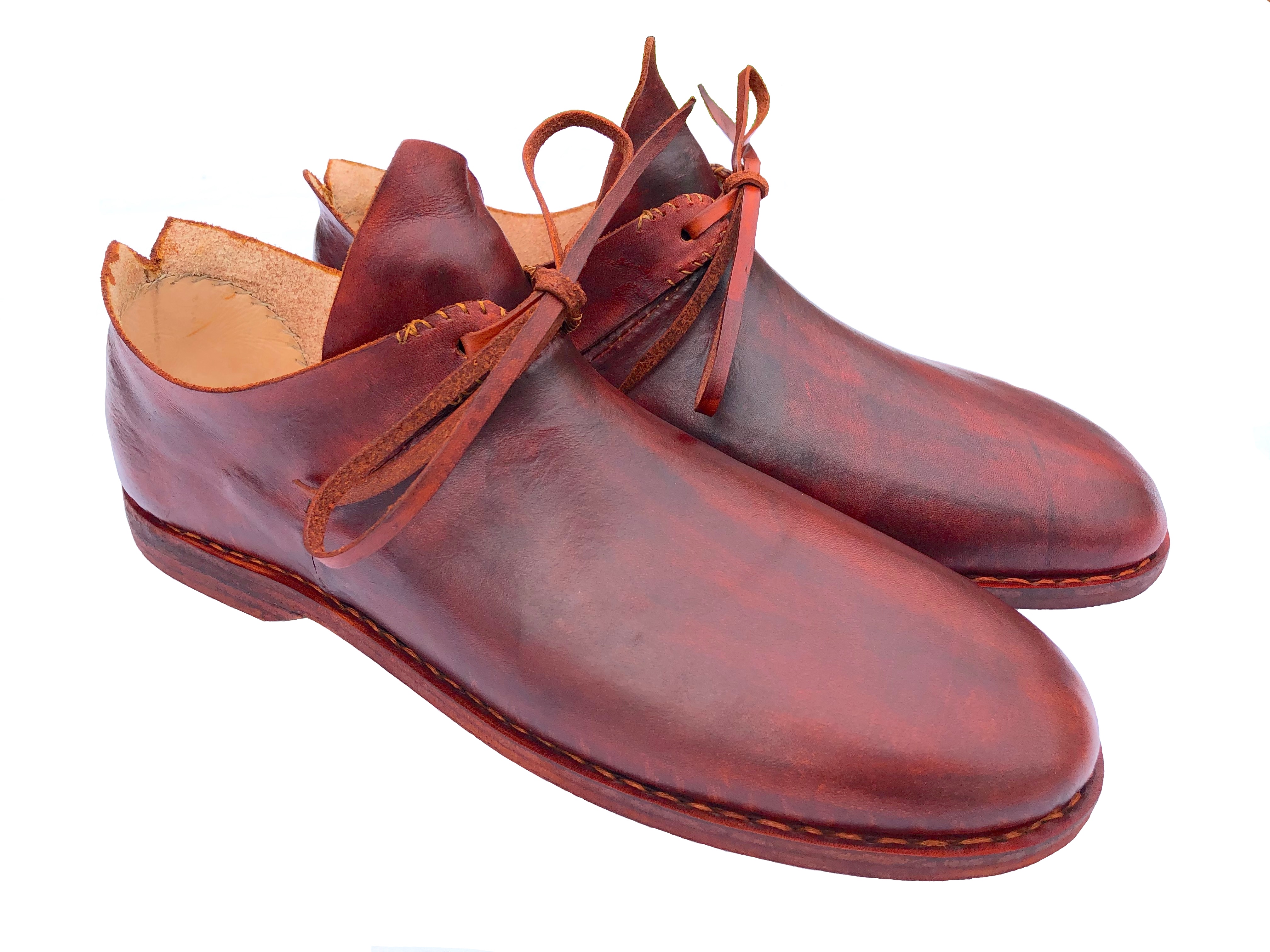 Historically correct C17th ankle boots. Round toe, no heel and straight lasted. |