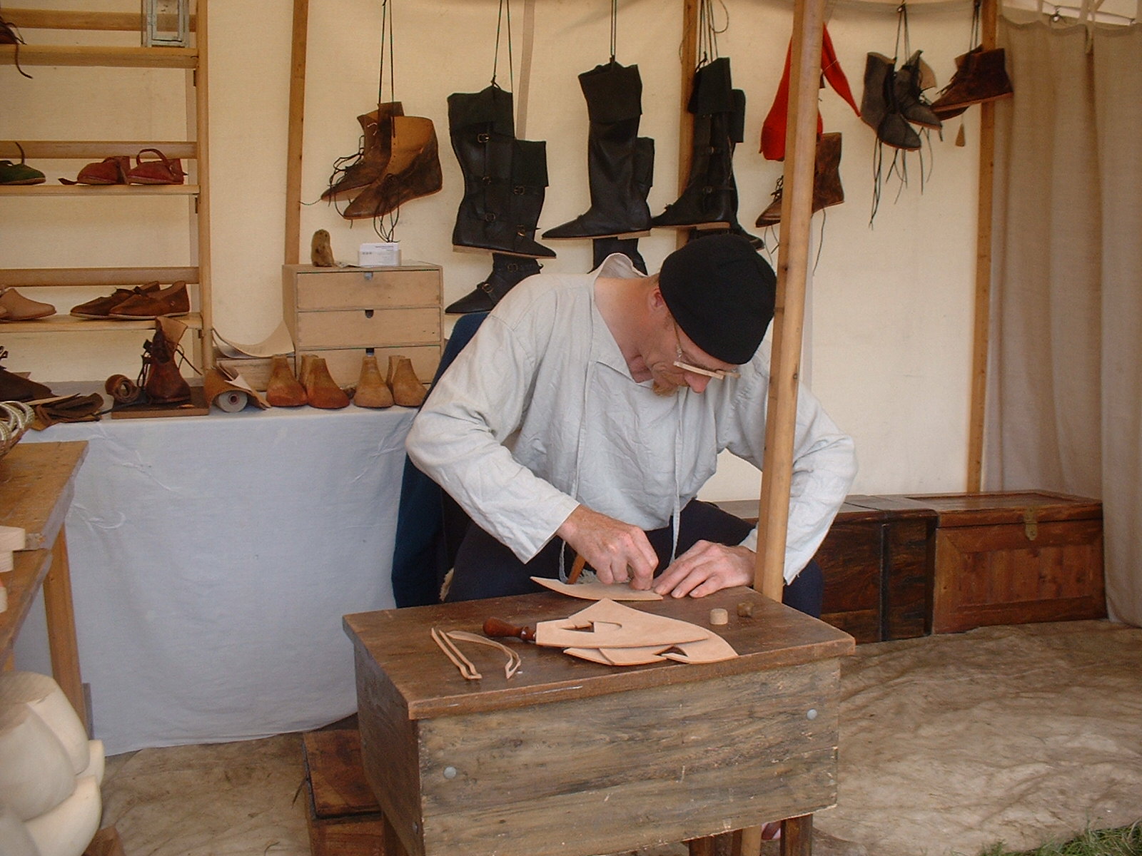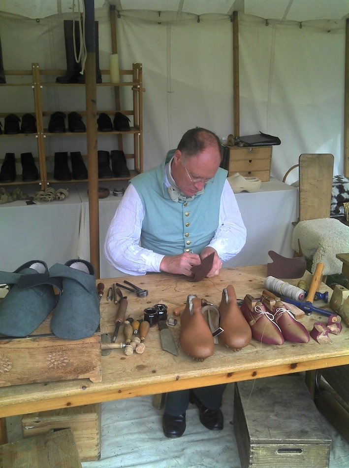 I will attend events as a historical shoemaker. The equipment and clothing I have is for C15th war of the roses, early and late C17th, mid C18th and Napoleonic eras.